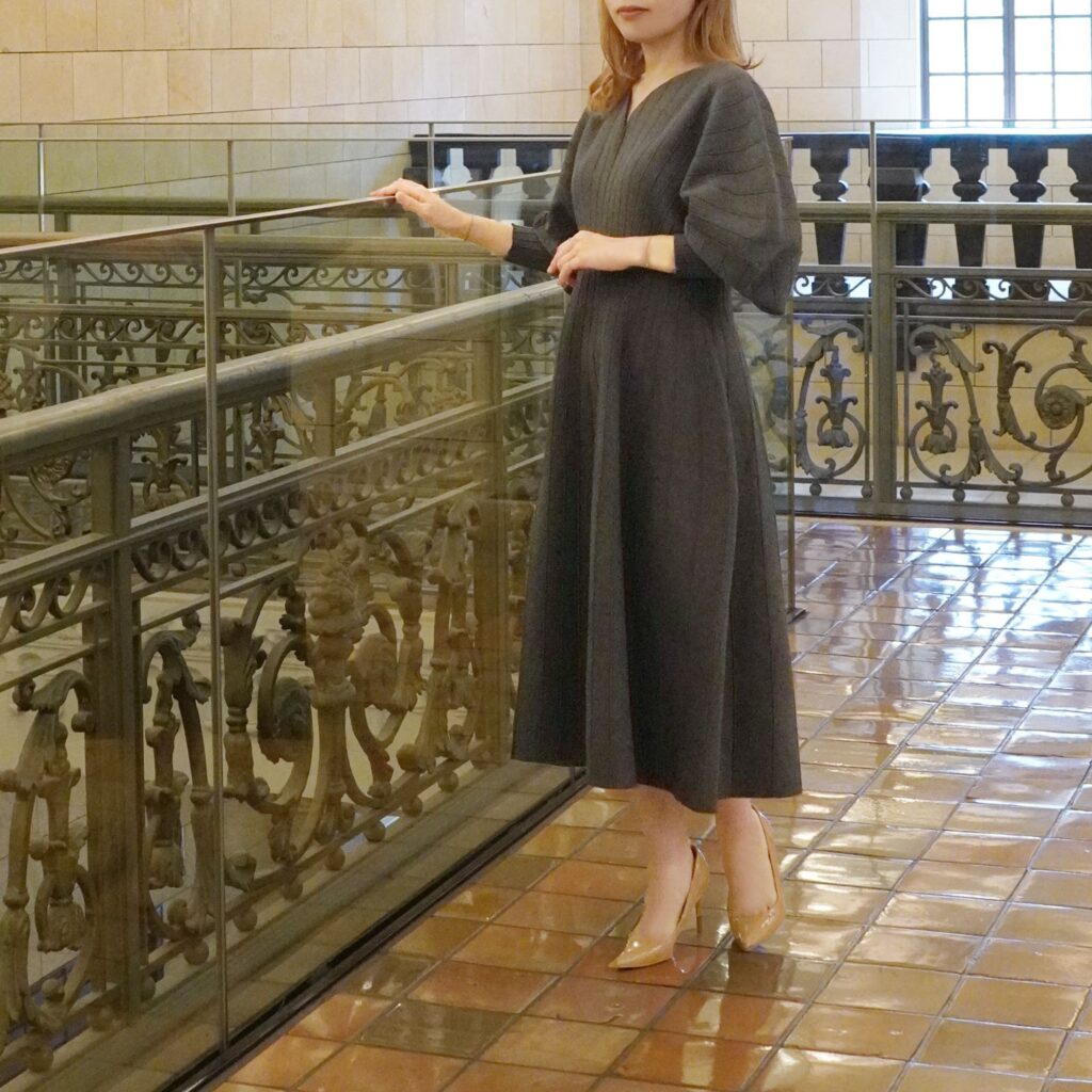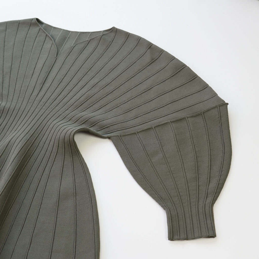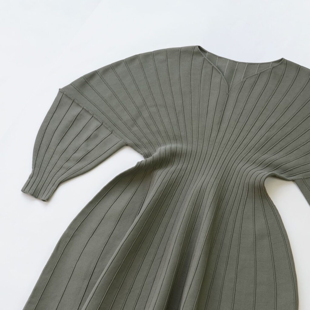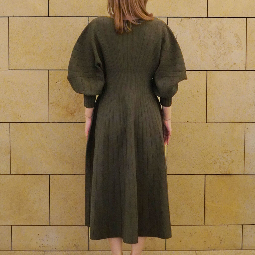 ホールガーメントならではのフィット&フレアラインが美しいデザインです。