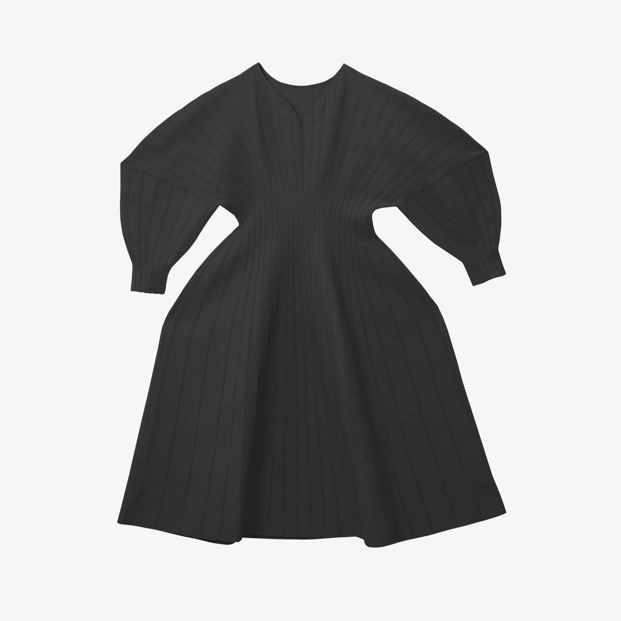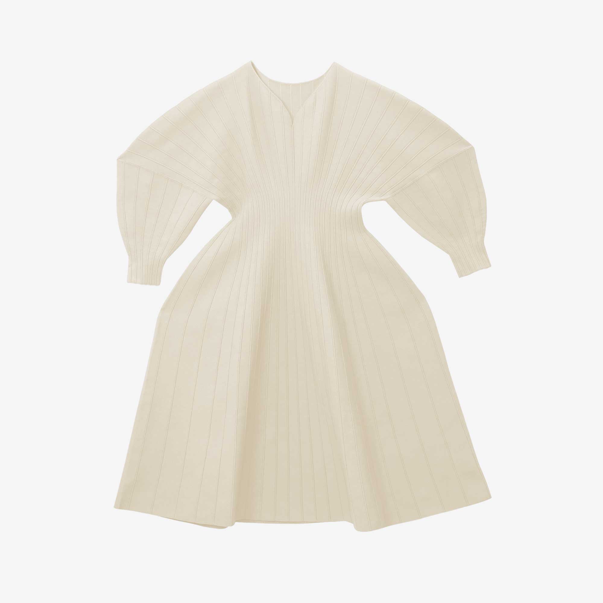 ストライプ柄と立体的なフォルムが1枚で様になるワンピース。