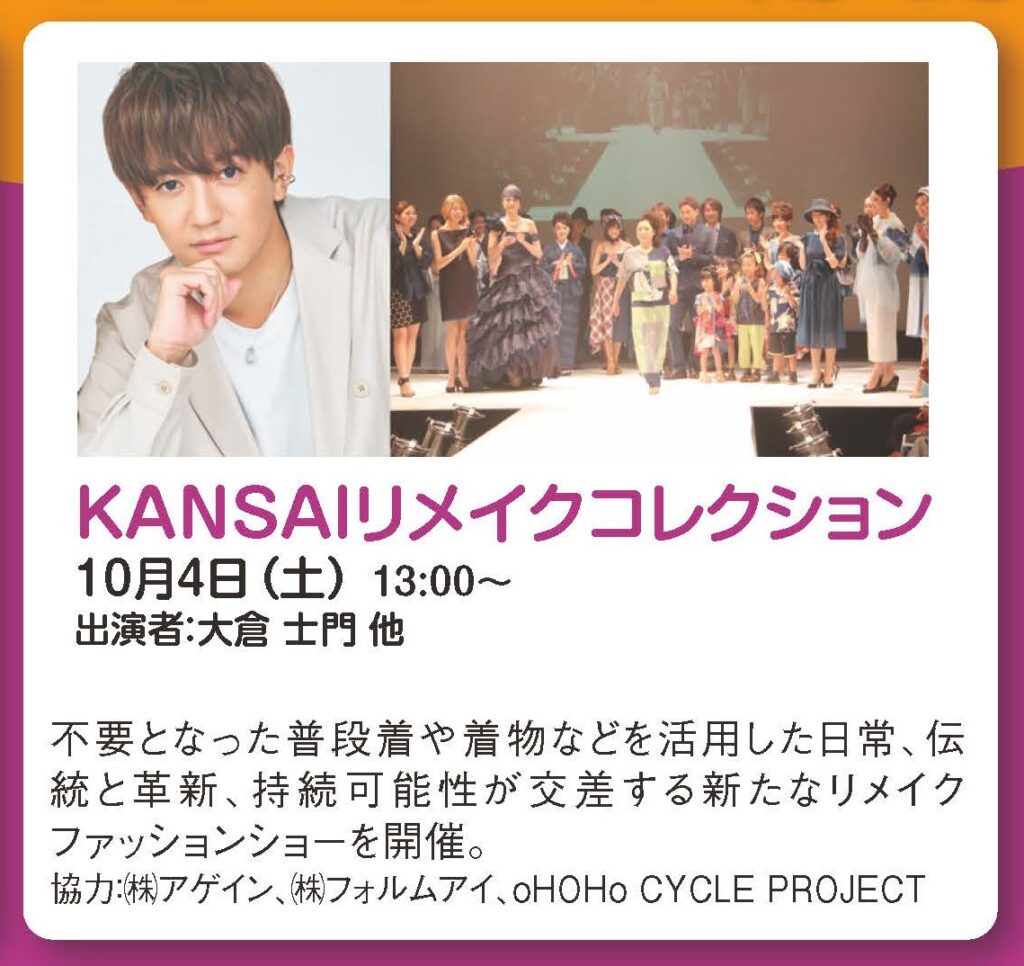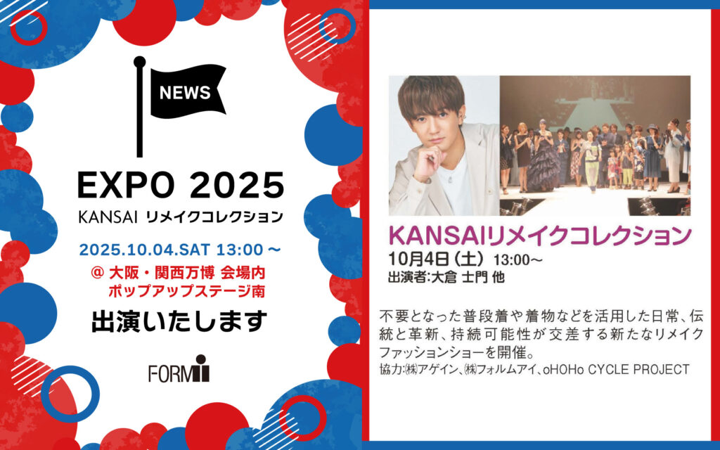 期間中 10月4日(土)に行われる KANSAIリメイクコレクションに、株式会社フォルムアイが出演することとなりました。