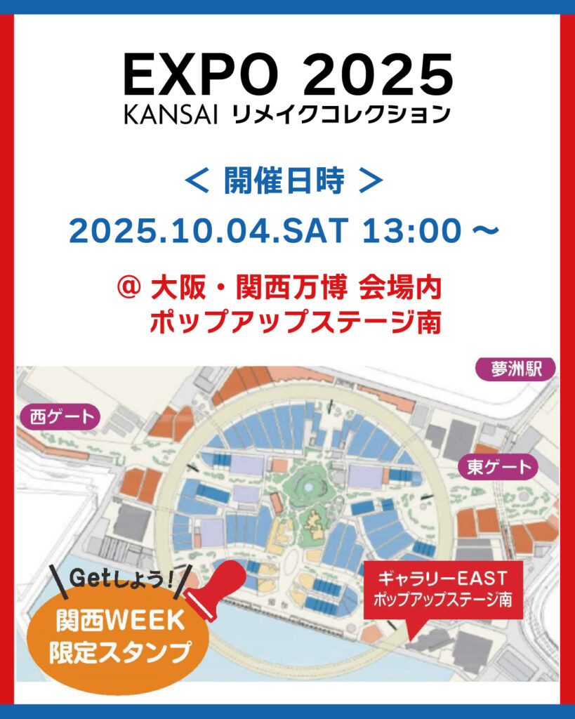 「KANSAIリメイクコレクション」は不要となった普段着や着物などを活用した日常、伝統と革新、持続可能性が交差する新たなリメイクファッションショーです。関西万博終了まで残りあとわずかとなり、すでに連日予約が取れない状況が続いておりますが、ご来場いただきます皆さまはぜひ「ポップアップステージ南」にお集まりください。