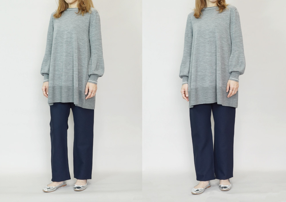 *着用モデル身長:156cm、サイズ:4 (着丈調整 -5cm)、カラー:ダークネイビー
