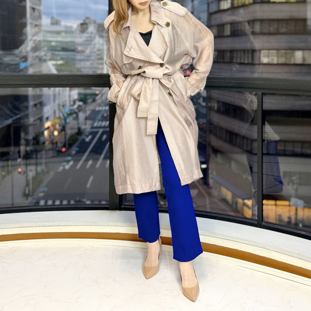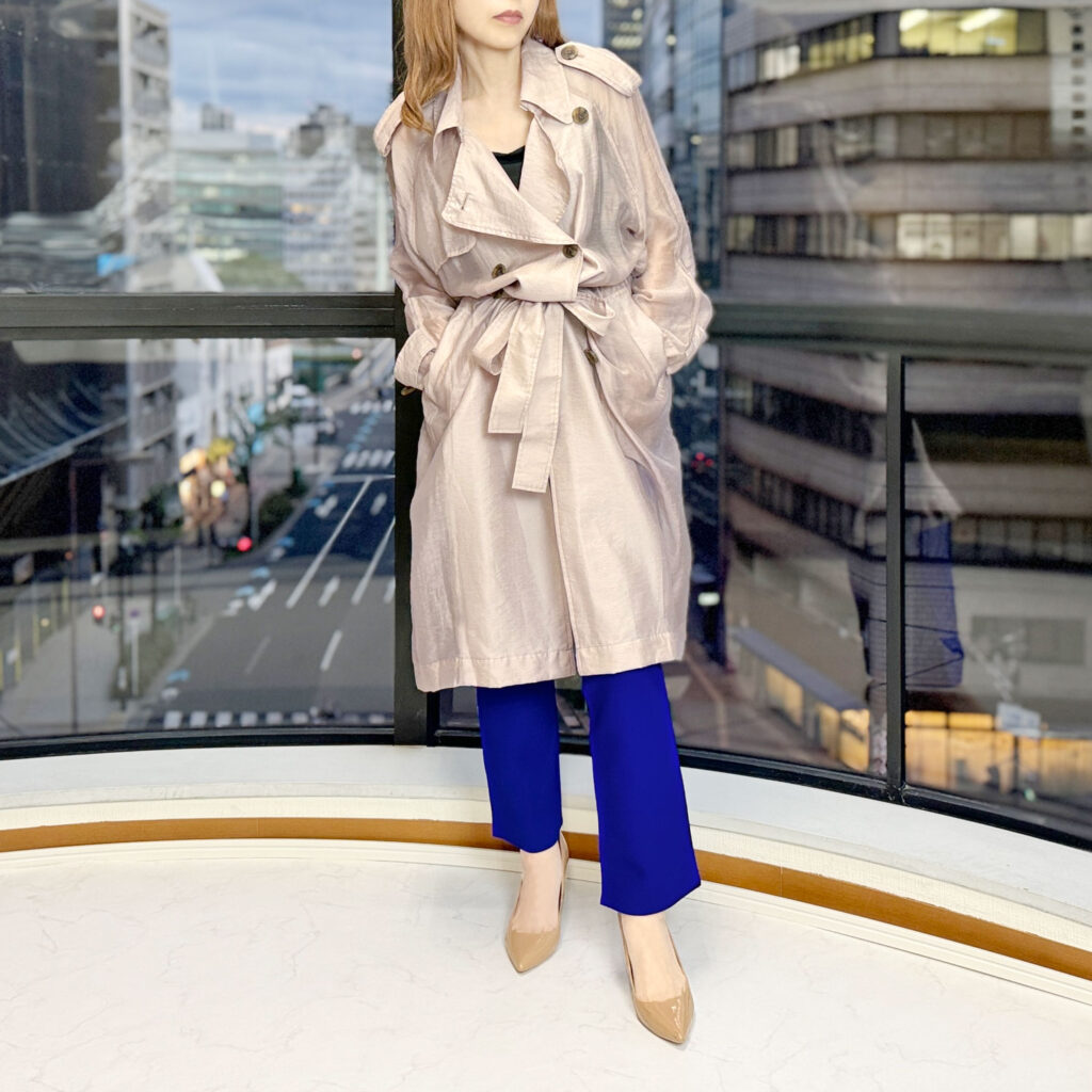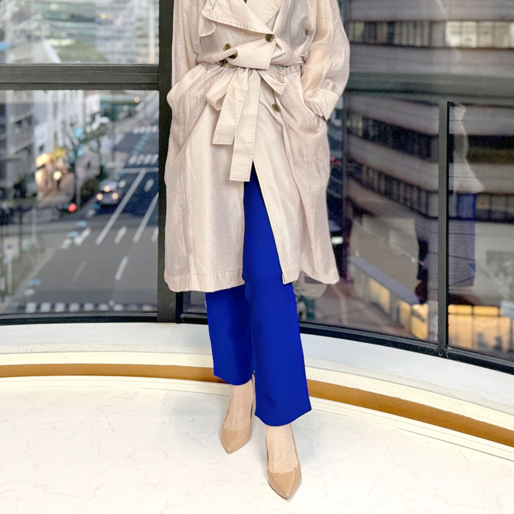 *着用モデル身長:156cm、サイズ:2 (着丈調整 -5cm)、カラー:ロイヤルブルー