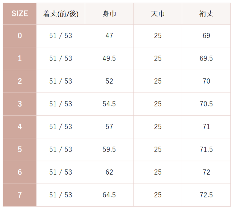 サイズは全8サイズの中からセレクトが可能です。さらにご希望に合わせて着丈を±10cm、裄丈を±5cm調整いただけます。